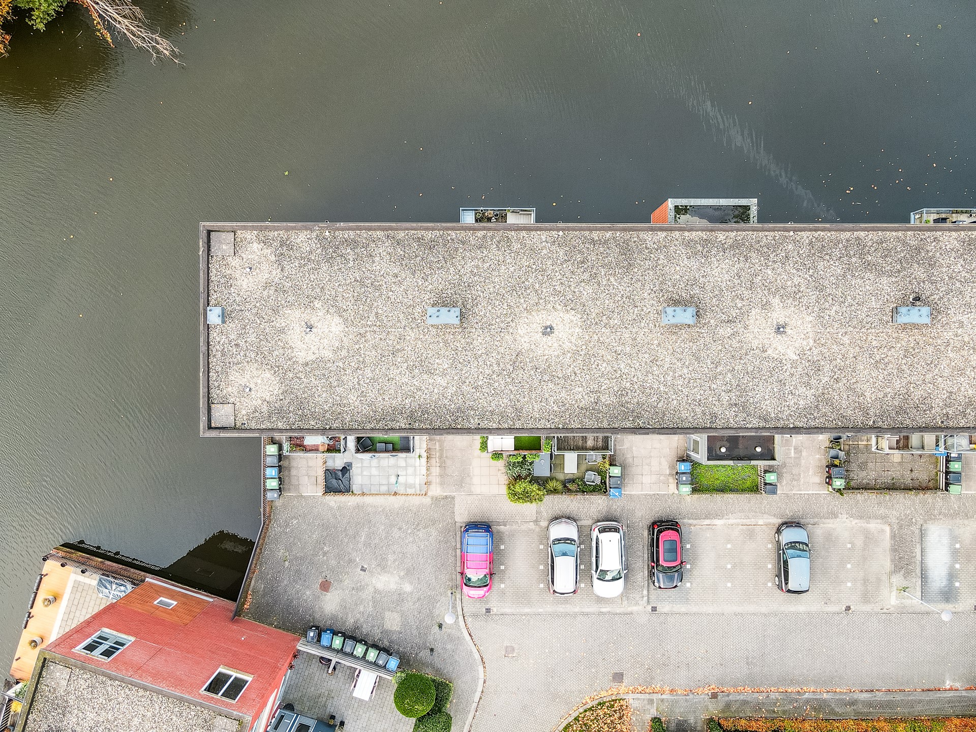 Misschien wel het mooiste aspect van deze verdieping is het weidse uitzicht over het water, dat je vanuit de woonkamer kunt bewonderen dankzij de twee Franse balkons. Hierdoor wordt buiten naar binnen gehaald en geniet je het hele jaar door van een prachtig levend schilderij.