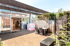 De achtertuin is keurig aangelegd met bestrating, heeft een achterom én een houten berging. Door de ligging op het noordwesten kun je hier tot in de avond heerlijk genieten van de zon.