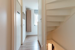 Bij binnenkomst valt direct op hoe verzorgd en uitnodigend deze woning is. Via de hal met toilet en toegang tot zowel de woonkamer als de keuken, loopt u door naar de ruime, aan de voorzijde gelegen keuken. Deze is prettig opgezet, met volop werkbladruimte en een fijne plek om te koken terwijl u uitkijkt over de rustige straat.