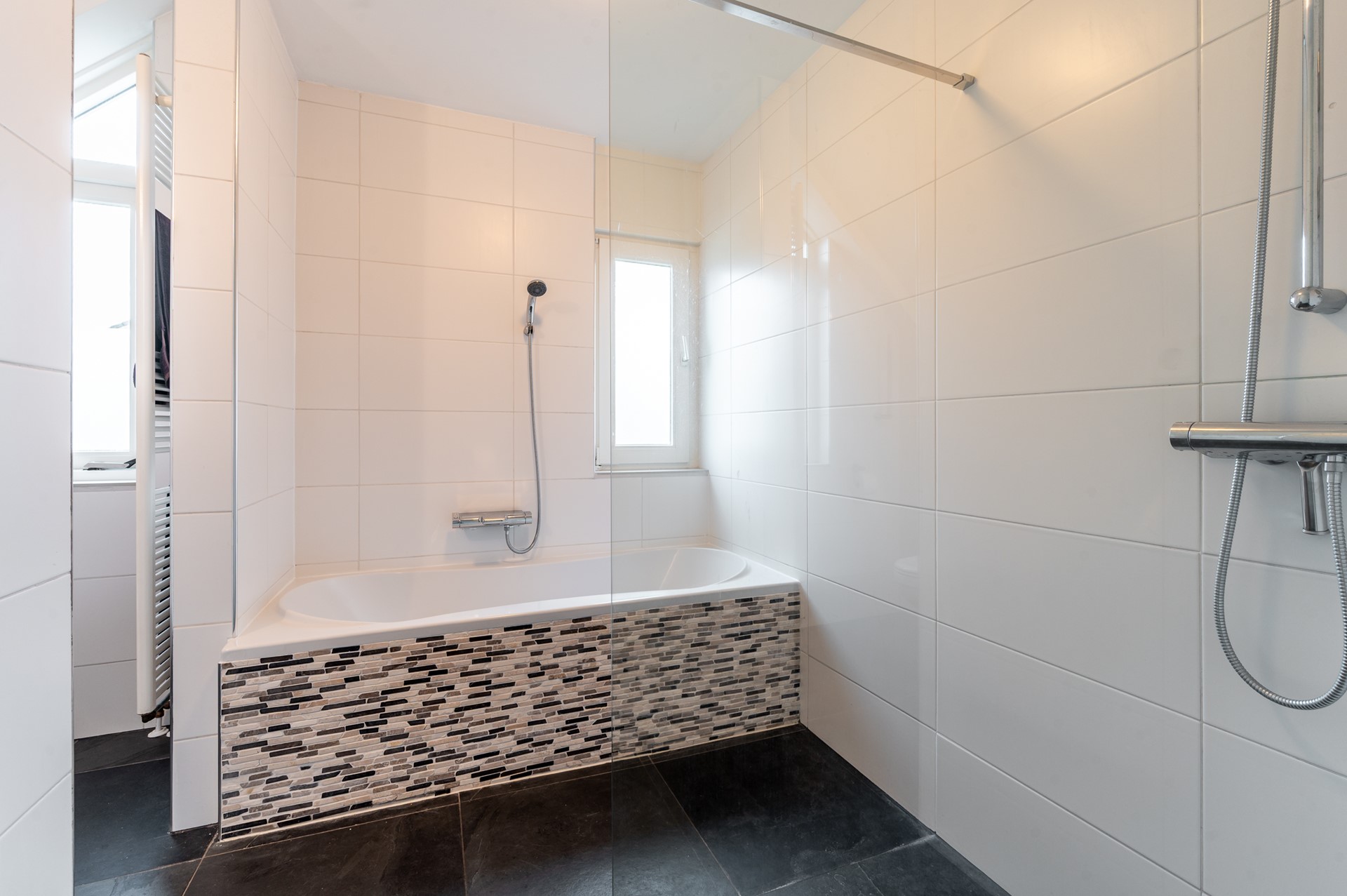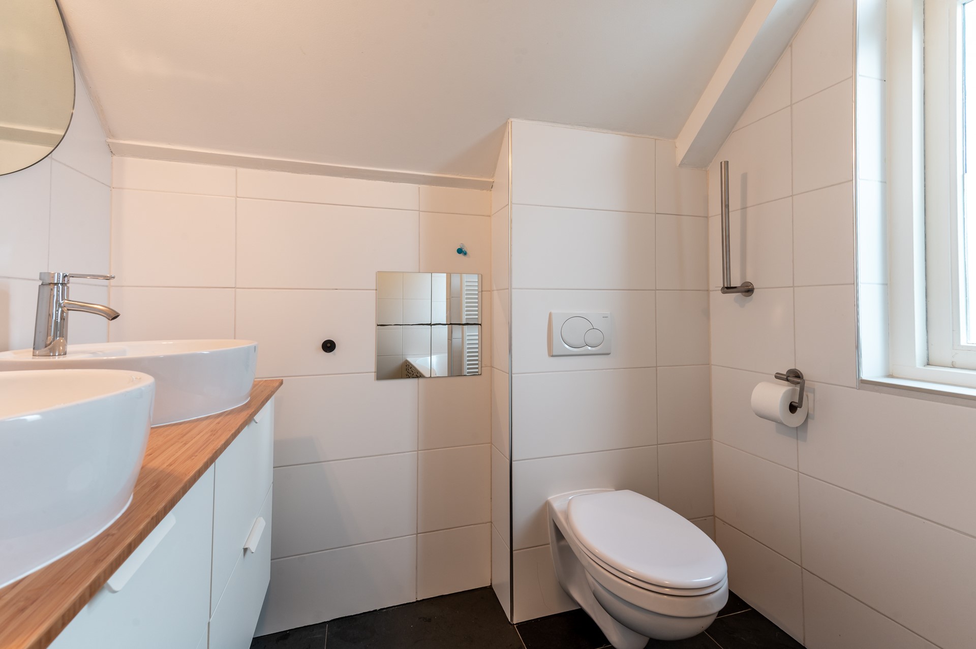 De badkamer is een echte verrassing: royaal opgezet en compleet uitgerust met een ligbad, een ruime inloopdouche, een toilet en een stijlvol wasmeubel met dubbele waskommen. Een fijne plek om de dag ontspannen te beginnen of juist rustig af te sluiten.