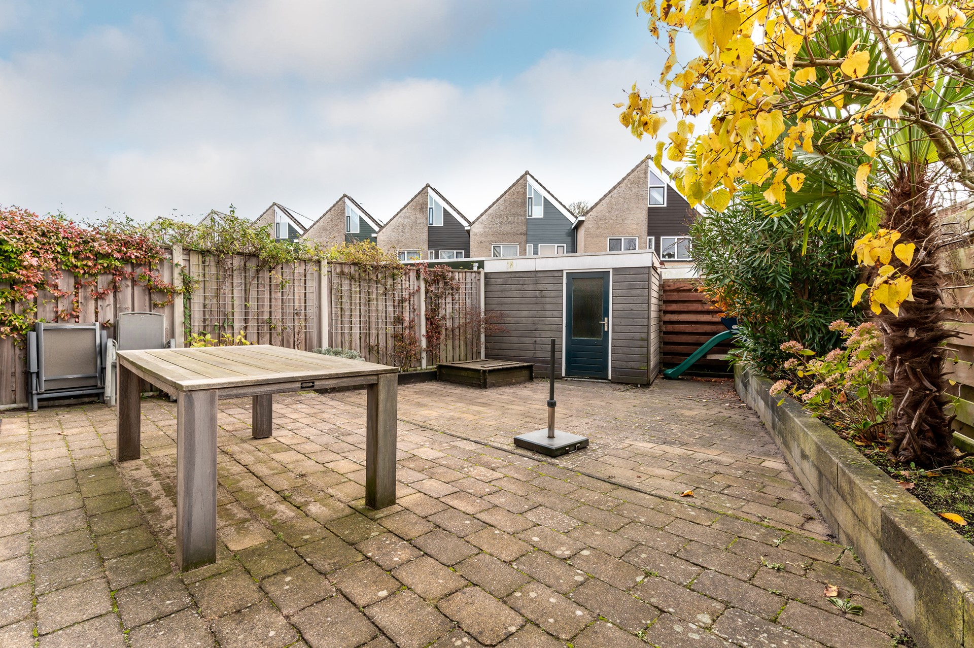 In de tuin staat een nette houten berging, ideaal voor fietsen en tuingereedschap. Dankzij de achterom bereikt u de tuin ook eenvoudig met de fiets of kinderwagen. De voortuin draagt bij aan de uitstraling van de woning en zorgt voor een extra welkom thuis gevoel.