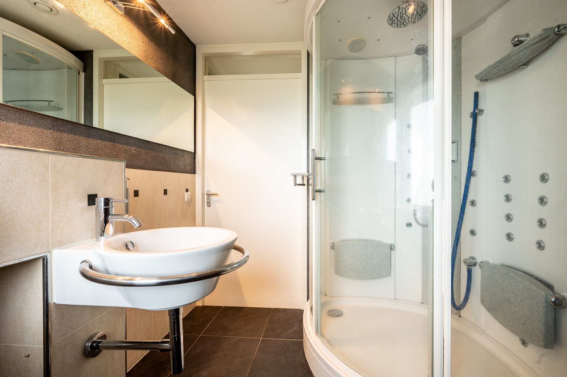 Op de eerste verdieping vind je twee slaapkamers en een badkamer die pure ontspanning ademt, met een heerlijke douche en keurig sanitair. Het toilet is apart van de badkamer, wat extra comfort biedt.