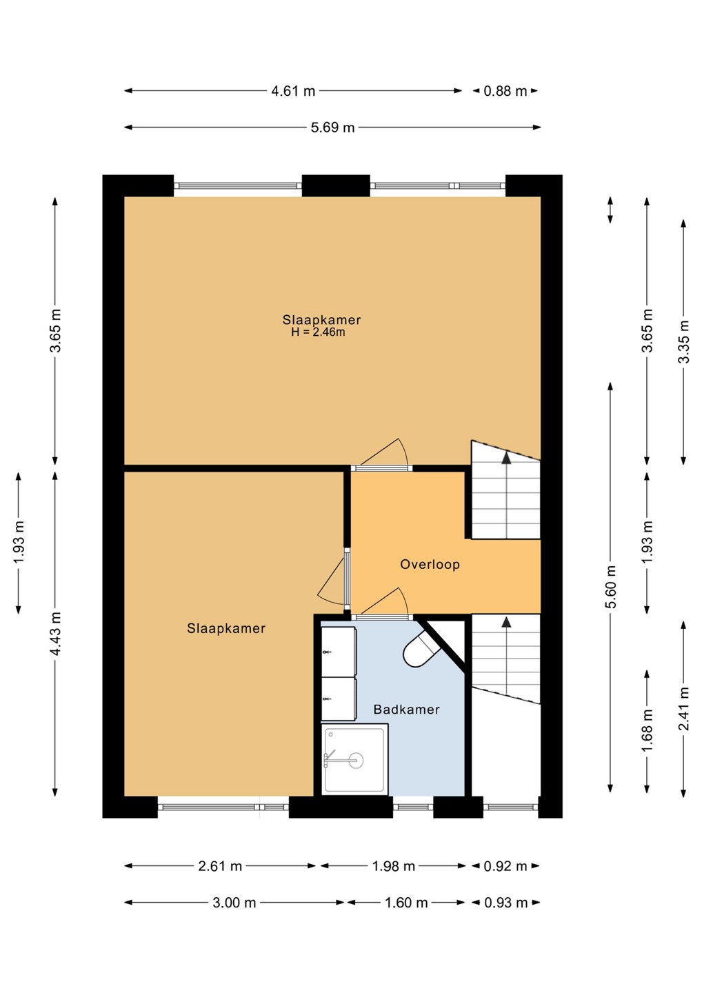 Op de eerste verdieping vind je twee zeer ruime slaapkamers voorheen waren dit er drie. De indeling is aangepast voor meer comfort, maar desgewenst weer eenvoudig te wijzigen. Aan de voorzijde bevindt zich de nette badkamer, voorzien van een inloopdouche, dubbele wastafel en een tweede toilet. De vloer is afgewerkt met een laminaatvloer met houten toplaag en het schilderwerk is strak uitgevoerd. Alles is tot in detail verzorgd.
