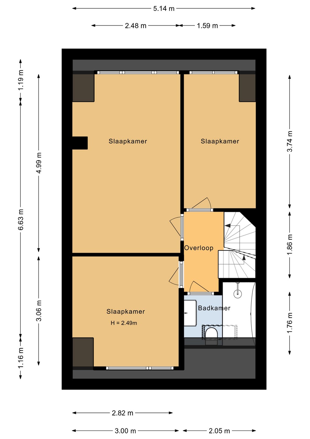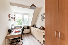 Op deze verdieping bevinden zich drie slaapkamers, waarvan twee extra ruime kamers aan de achterzijde met een dakkapel en elektrische rolluiken. De slaapkamer aan de voorzijde is eveneens keurig afgewerkt. Alle kozijnen zijn van kunststof en voorzien van geïntegreerde jaloezieën.
