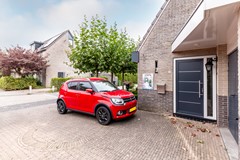 Aan de voorzijde kun je twee auto’s kwijt op eigen terrein. Ideaal indien u elektrisch wilt laden. Met de zonnepanelen, welke al aanwezig zijn, maakt dit het geheel nog aantrekkelijker.